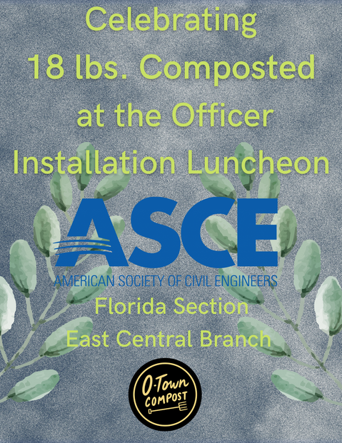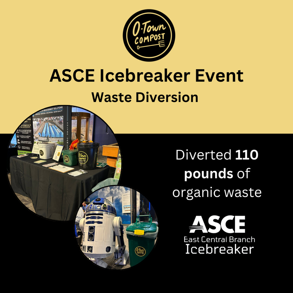 The ASCE East Central Branch Sustainability Committee is making sustainability practical, starting with composting. Since 2022, the committee has partnered with local vendor O-Town Compost to divert food waste at major events, including the annual ASCE Icebreaker and Officer Installation Luncheon.